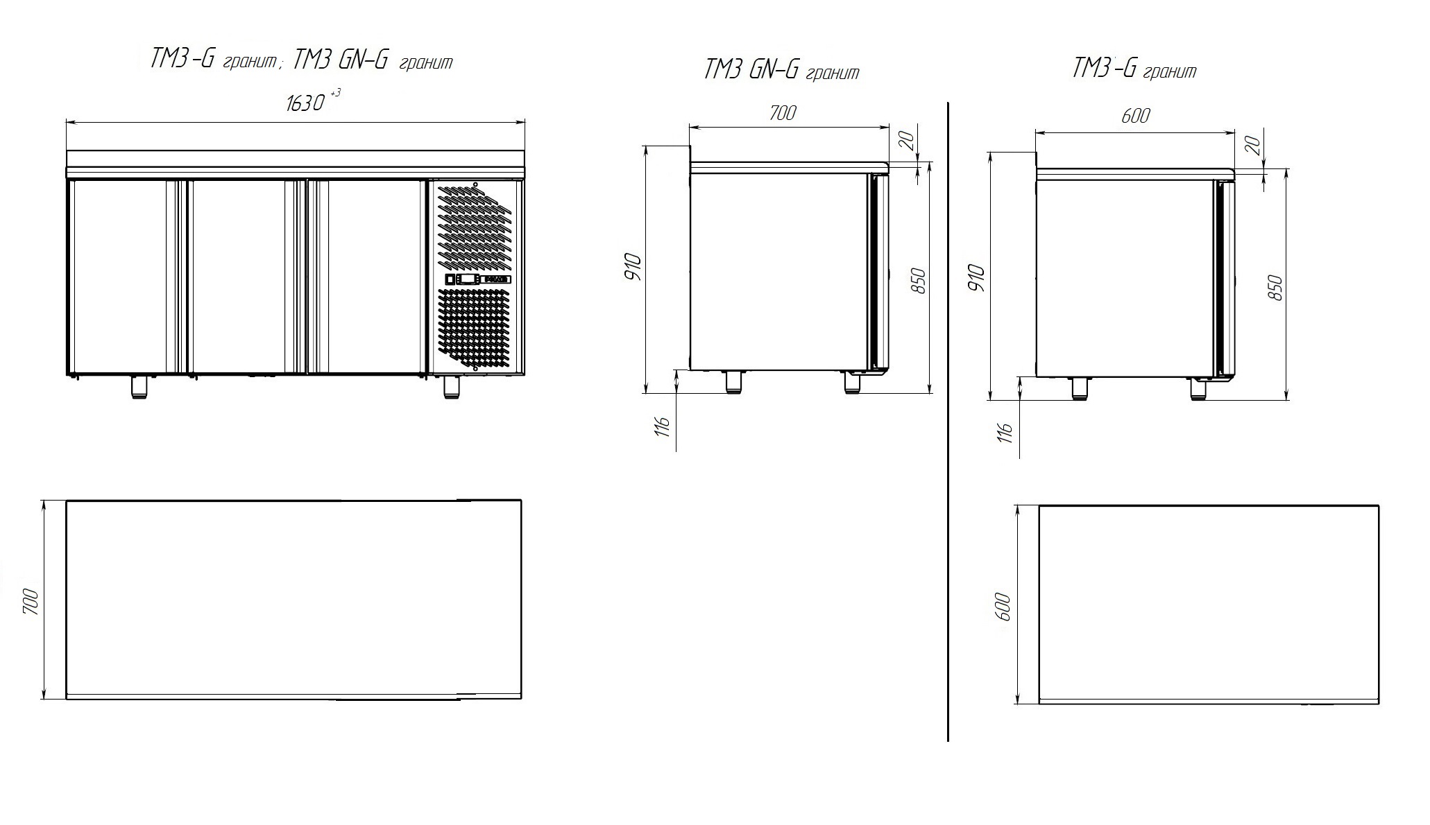 Артикул 1052236d Направляющие GN1/1 + Условия окружающей среды (t,°C,/вл-сть, %) до +43/до 80 Размеры 1628х700х850/910 Толщина стенки корпуса, мм 43 Кол-во дверных проемов 3 Глубина стола, мм 700 Температурный режим, °C -2...+10 Объем, л 450 Система электропитания, В/Гц 230/50 Расположение агрегата Боковое Серия столов Grande - классическая серия с максимальным ассортиментом Потребляемая мощность, Вт, не более 350 Тип охлаждения динамический Хладагент R290 Материал обшивок корпуса стола Нержавеющая сталь Тип оттайки автоматический с системой испарения конденсата Терморегулятор эл.блок Двери/Ящики с глухими дверьми Столешница из натурального гранита Кол-во полок 3 Материал полок Окрашенная оцинкованная проволока Материал столешницы натуральный гранит Толщина столешницы 40 Высота борта, мм 60 Материал обшивок корпуса изнутри нержавеющая сталь -